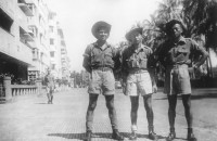 India 1945. Back row L to R: Larry Goon, Dick Yip, Bud Quon, Hubie Lee and Gordon Wong. Front row: Herb Lim, Willie Chong.
