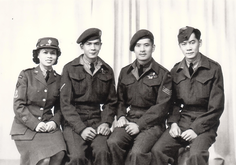 While waiting for transportation to return to Canada, he met a Chinese Australian woman and took her as a war bride. He was unable to bring her home right away due to the Chinese Exclusion Act.